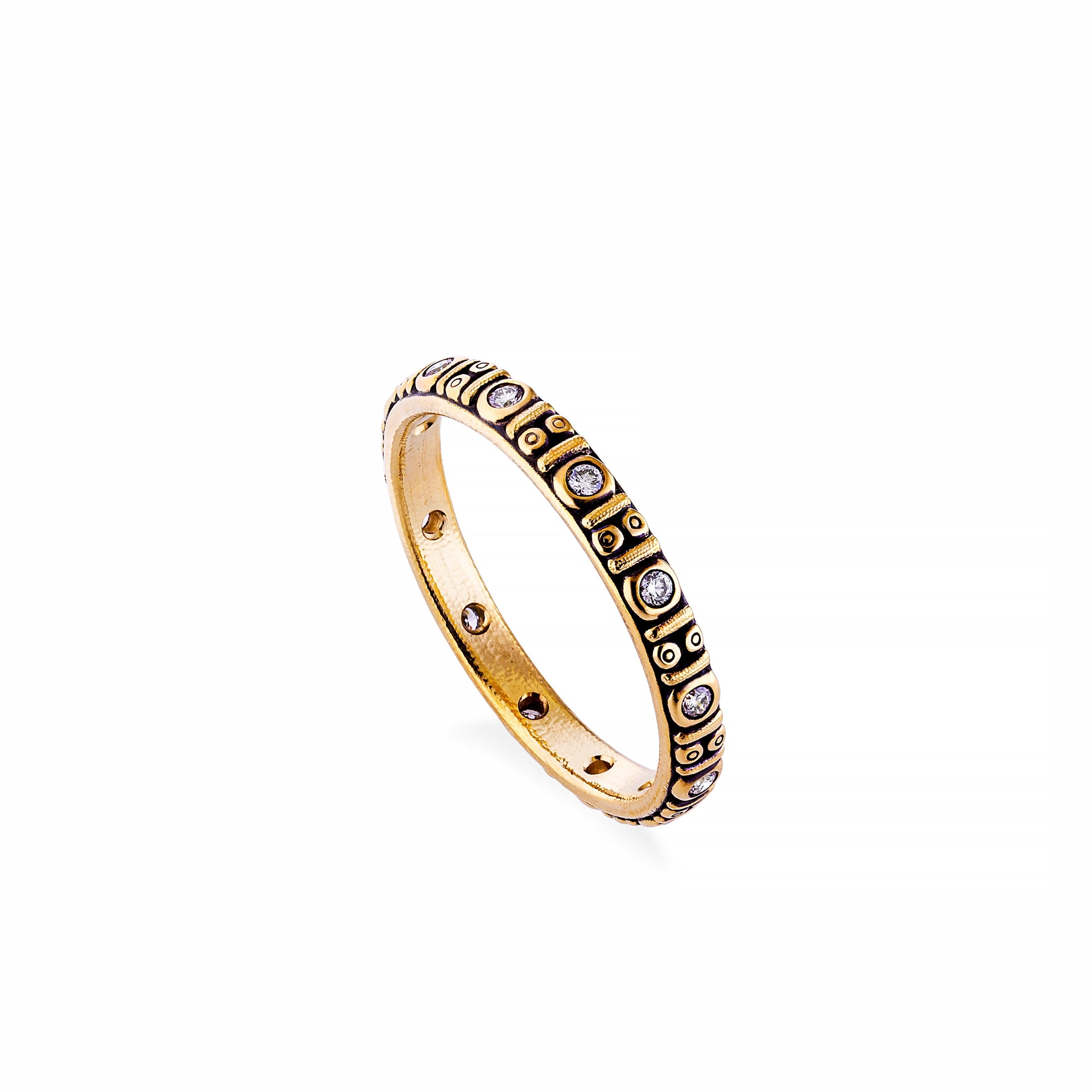 Alex Sepkus 'Circle' band in your choice of either 18k rose gold or 18kt yellow gold with 12-13 diamonds. approx. .16 total carat weight.