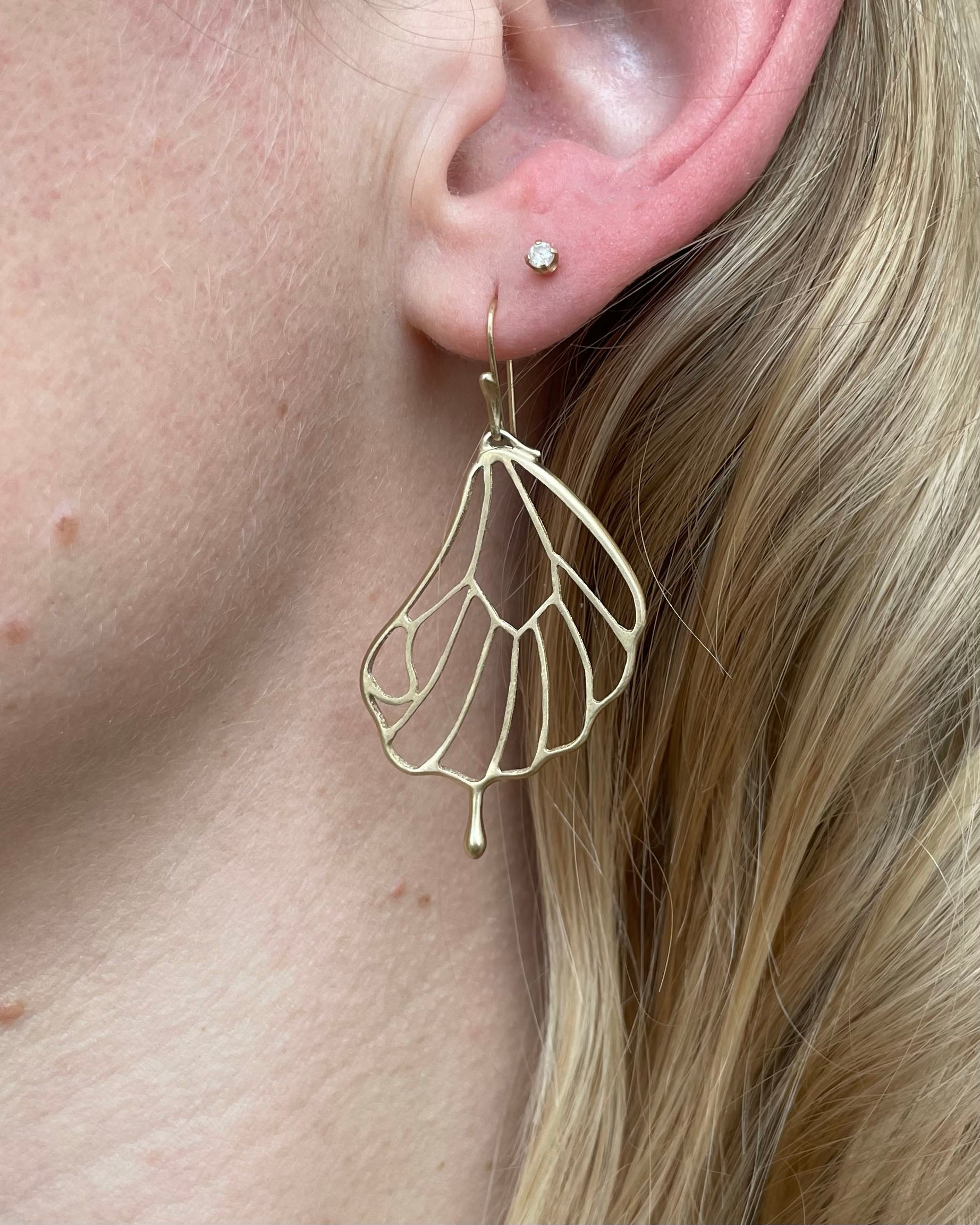 14K yellow gold is elegantly crafted into the silhouette of papillon butterfly wings by Annette Ferdinandsen.