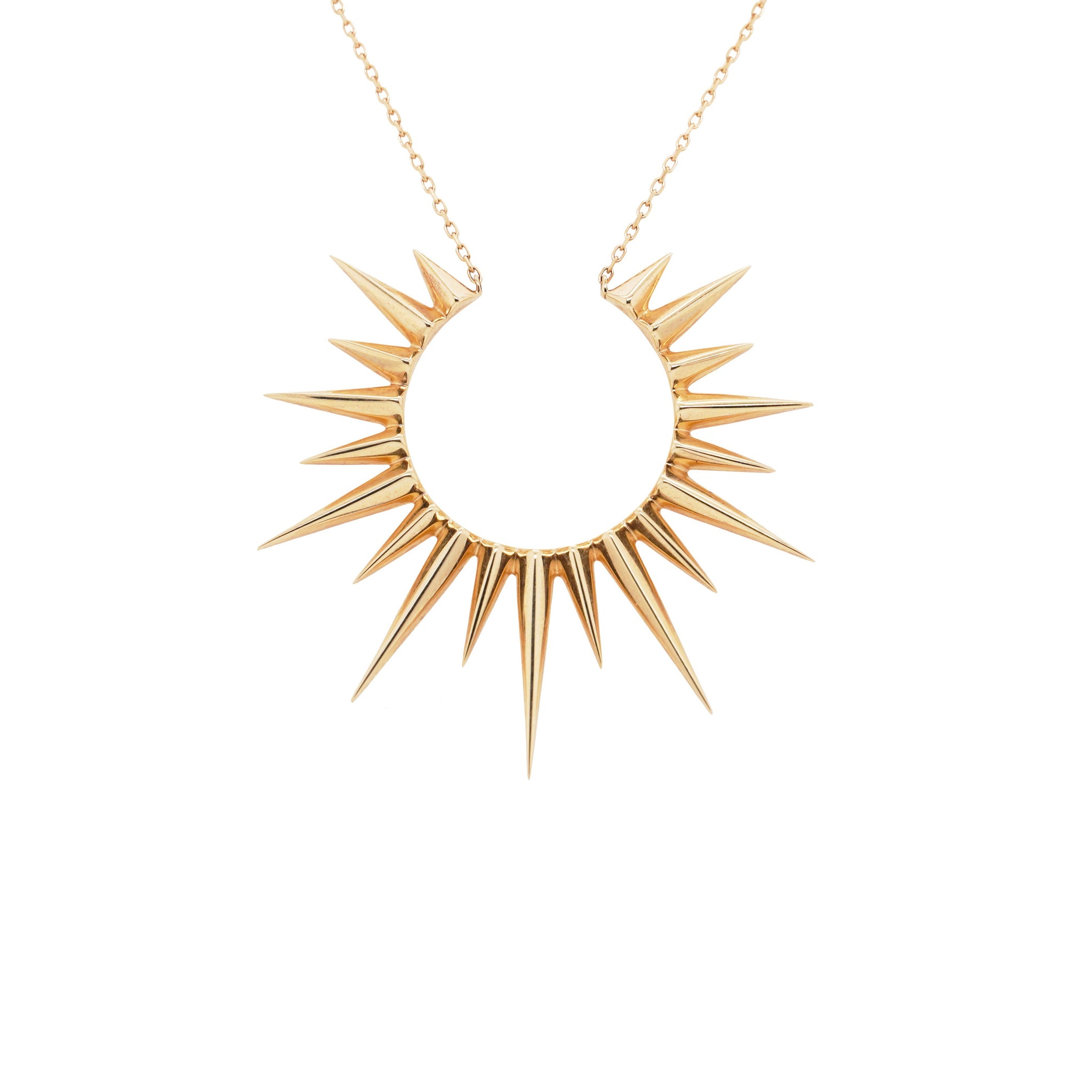 A 14K yellow gold necklace from Celine Daoust with a large king sun motif.