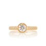 To complete your special ring simply select your preferred metal and ring size. Next, select your desired carat weight then choose your center stone from a variety of ethically sourced or lab created diamonds. Click on the ribbon to see the stone certificate, and the arrow to see a video of the actual stone. Mounting price does not include center stone.