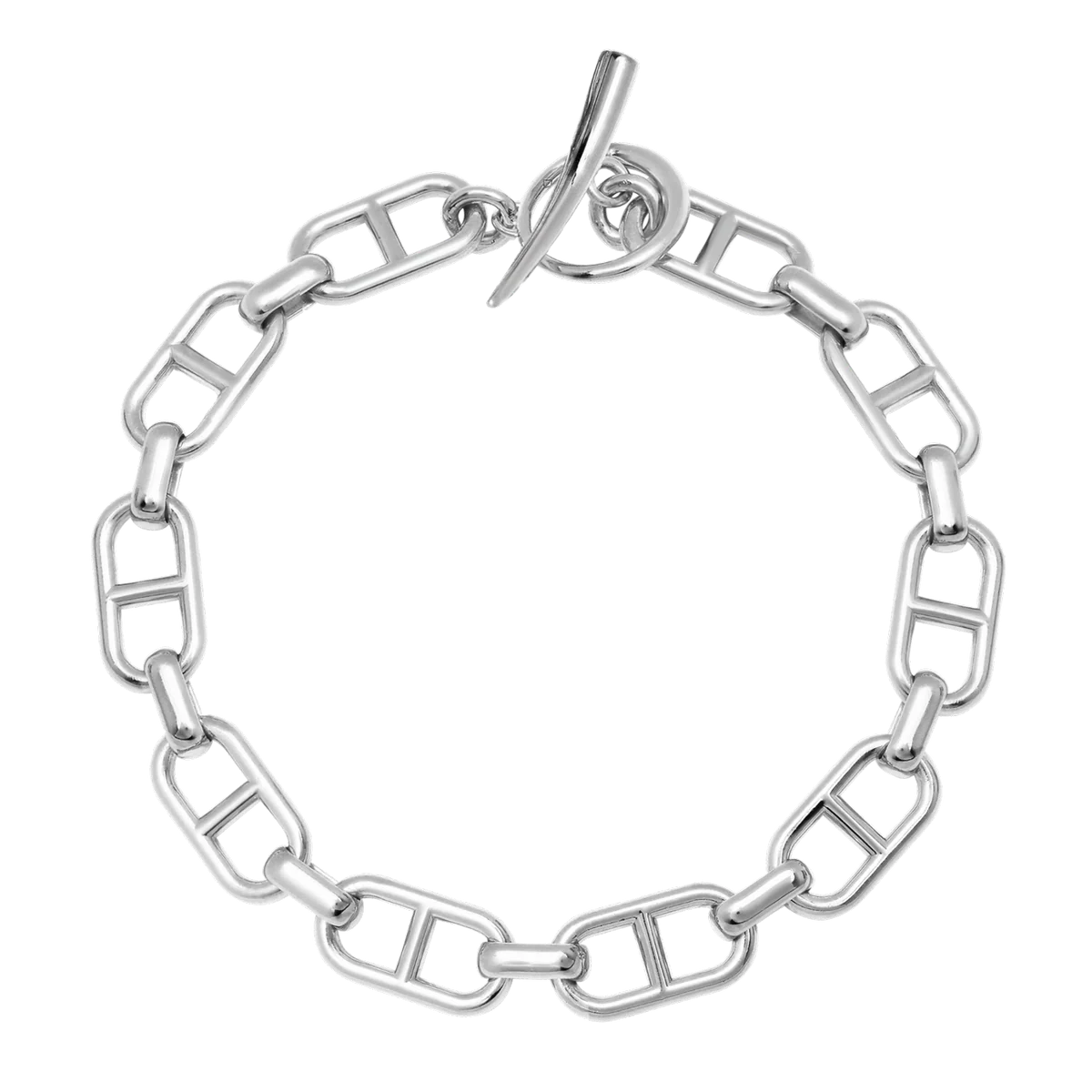 From Gabriela Artigas, this Stirrup Link Chain Bracelet is crafted in sterling silver. Inspired by the timeless utility and refinement of the stirrup, the design features two mirrored stirrup links that create a balanced, sculptural form. The bracelet is finished with the brand’s signature Tusk clasp, offering a refined yet distinctive presence on the wrist.