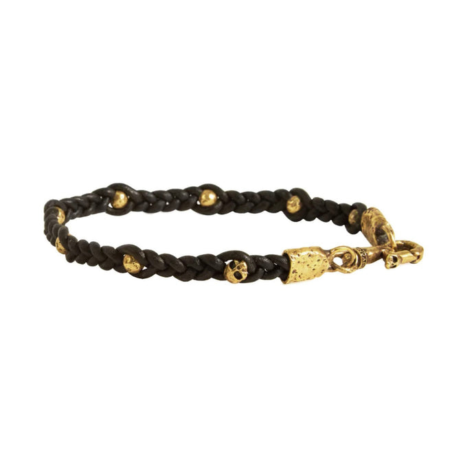 Distressed Silver Bead and Leather Cord Bolo Bracelet