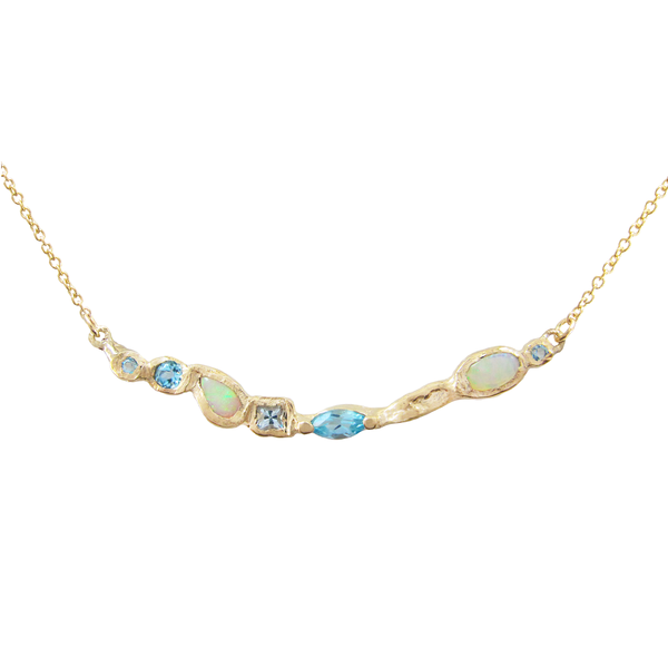 Medium: 14K Yellow Gold, Opal, Blue Topaz, Aquamarine