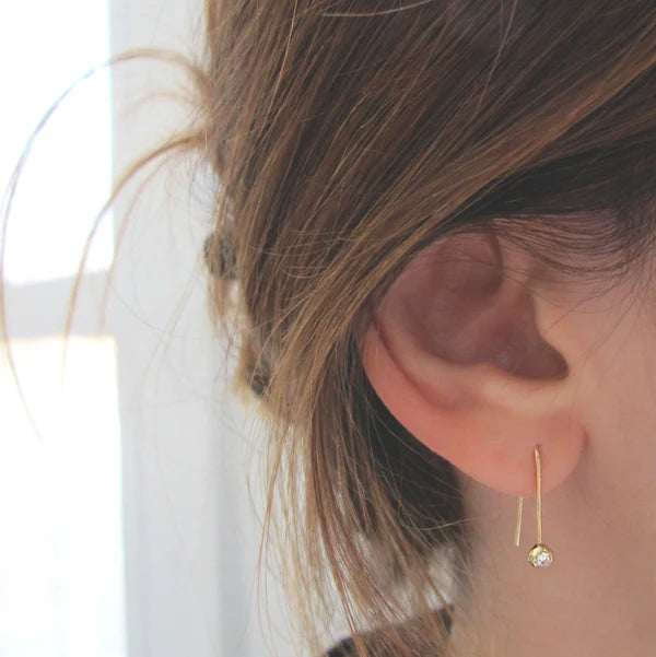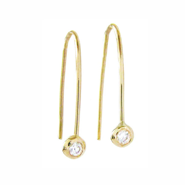 From Misa Jewelry, these earrings are made out of 14k yellow gold featuring two bezel set white diamonds, totalling 0.06tcw.