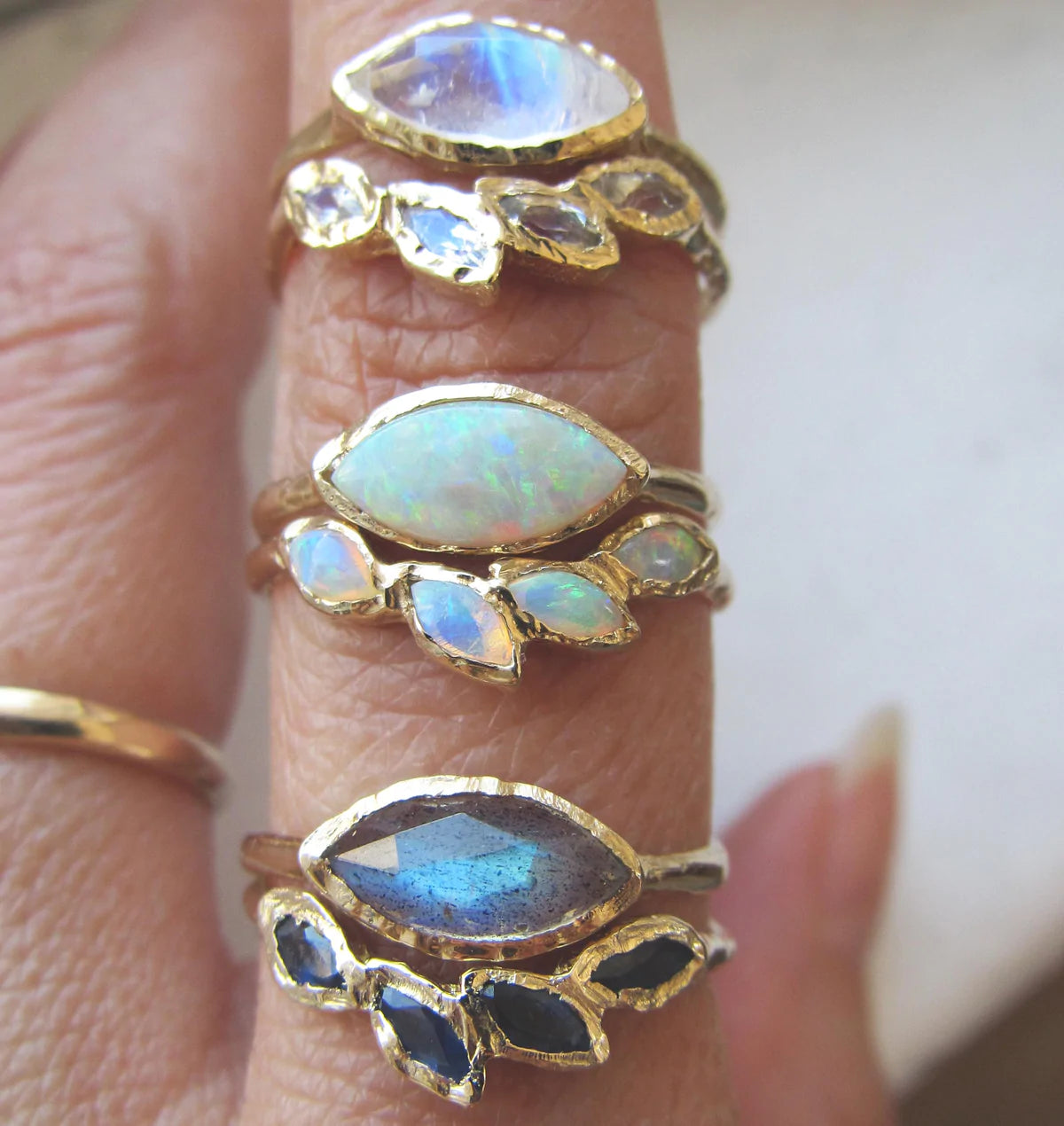 From Misa Jewelry, the Tribe Labradorite ring in 14K yellow gold.
