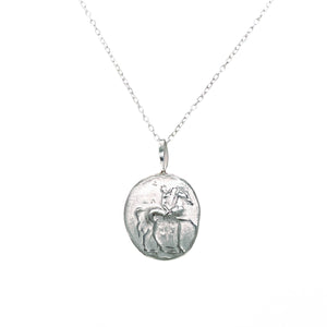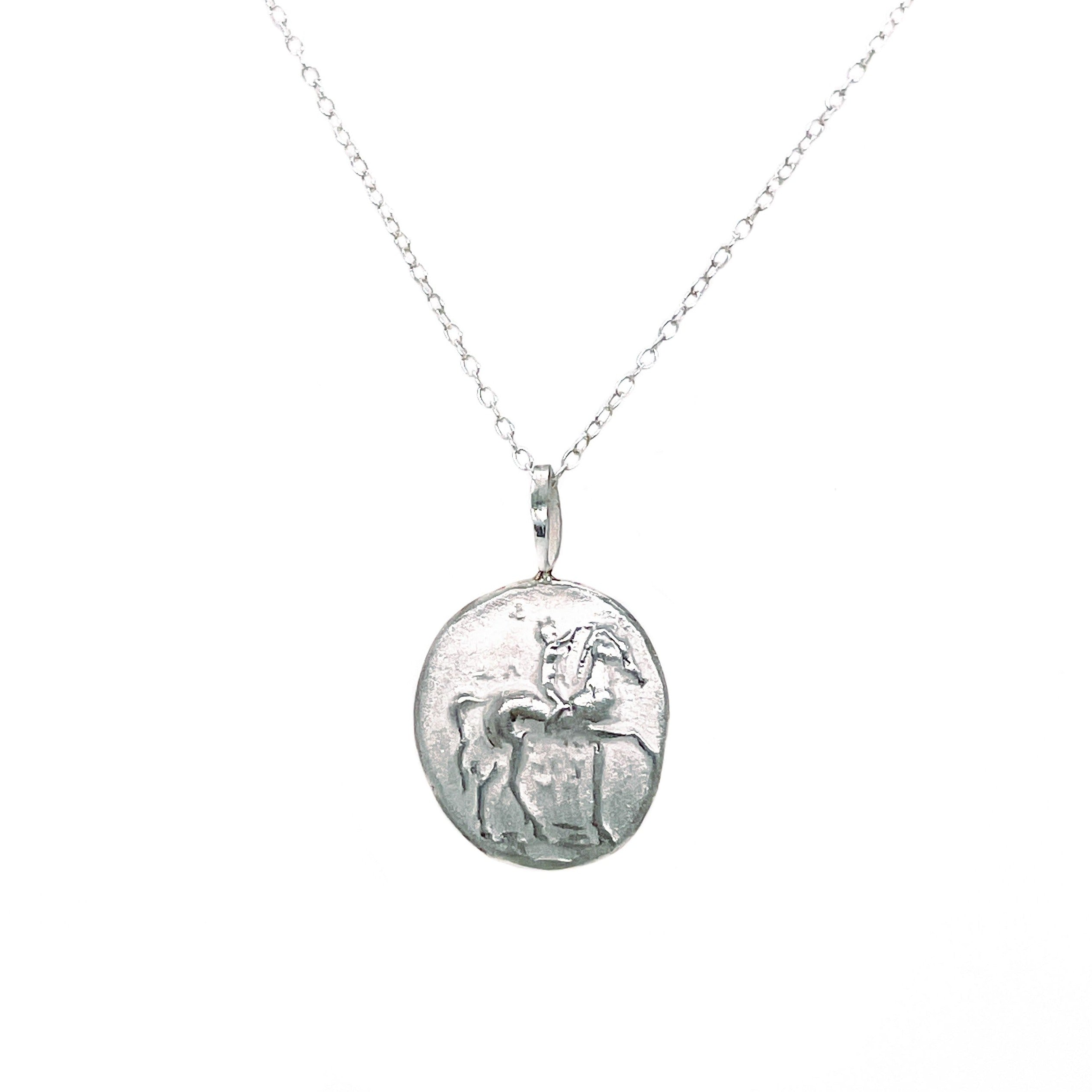 From Robin Haley, this sterling silver pendant is based off of an artifact from Greece dated 365 BC.