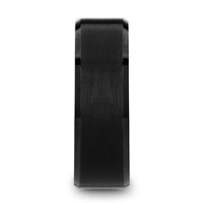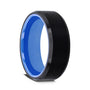 A black tungsten comfort fit men's band from Thorsten Rings with brushed center, bright bevels, and deep blue inside color.