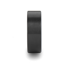 A flat black tungsten carbide men's band from Thorsten Rings with a brushed finish.