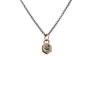 Celebrate your birthday or the birthday of a loved one with this 14k yellow gold and oxidized sterling silver birthstone necklace by Julie Nolan. Alexandrite is the birthstone for the month of June. The lab grown alexandrite is flush set in 14k yellow gold and hangs from an oxidized sterling silver chain.