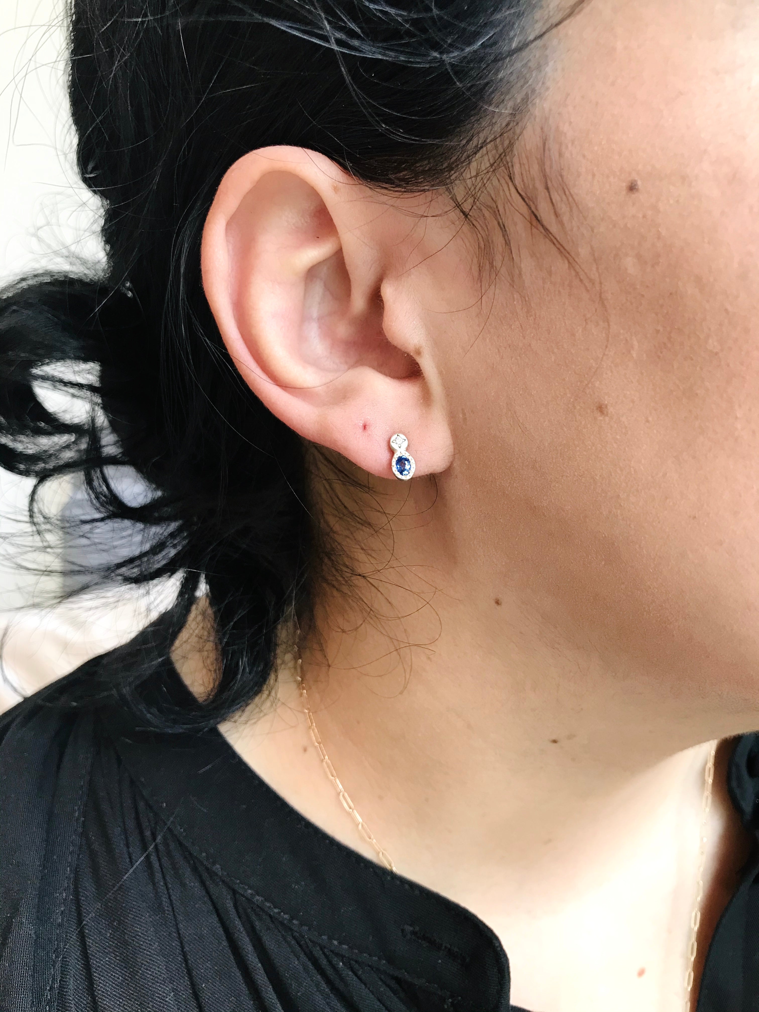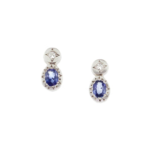 Adel Chefridi's 'Oval and Round' earrings in Sterling Silver with oval blue sapphires and round white diamond, .03 total carat weight.