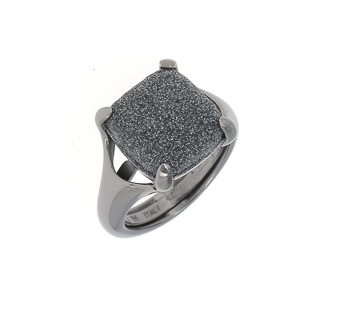Square Cut "Polvere" Ruthenium Plated Sterling Silver Ring