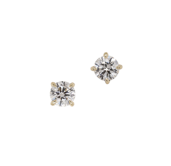 Lab Grown Round Brilliant Cut 4 Prong Set Yellow Gold Earrings
