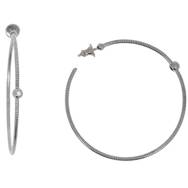 DNA Spring Medium Rhodium Plated Silver and Diamond Hoops