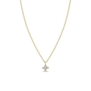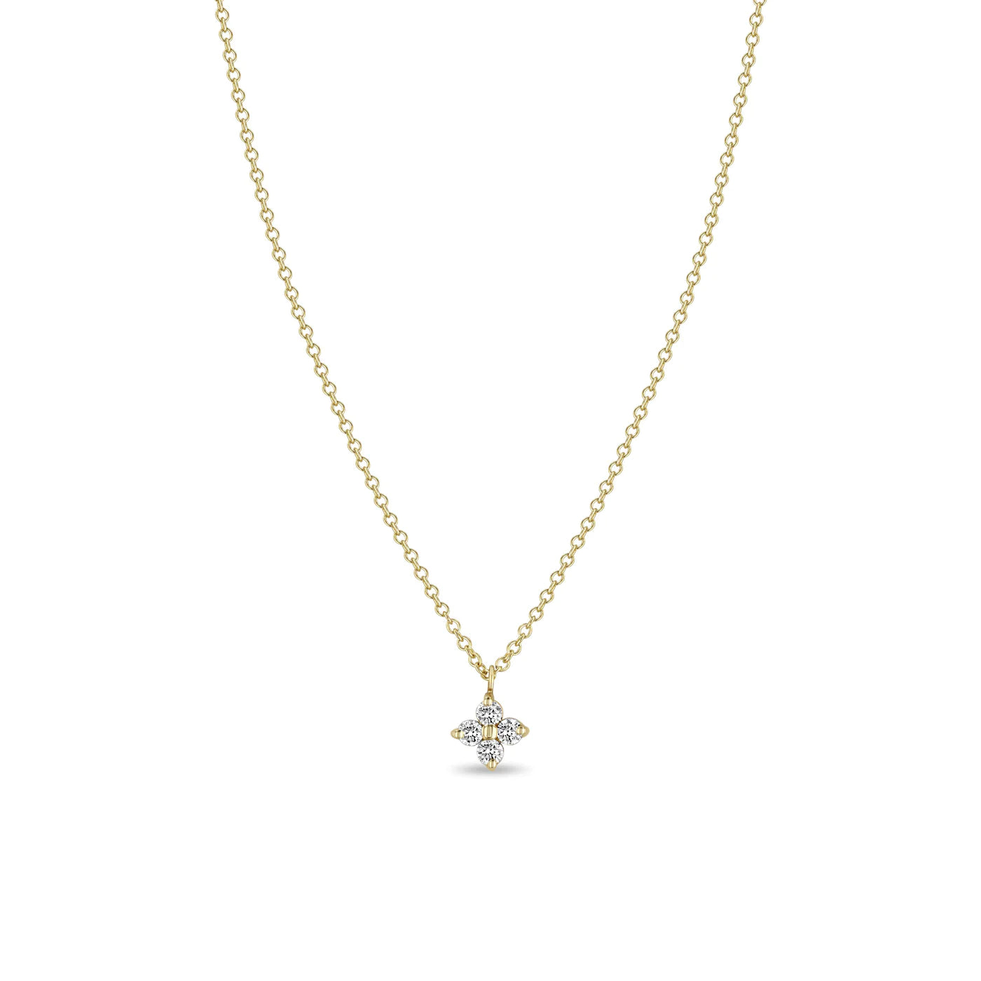 14k gold cable chain necklace with a small quad of prong set round white diamonds