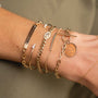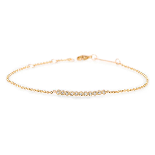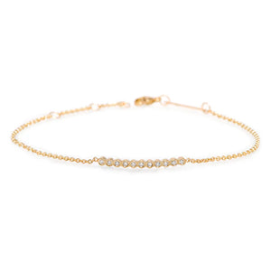 14k yellow gold bar bracelet of 11 tiny bezel set round diamonds