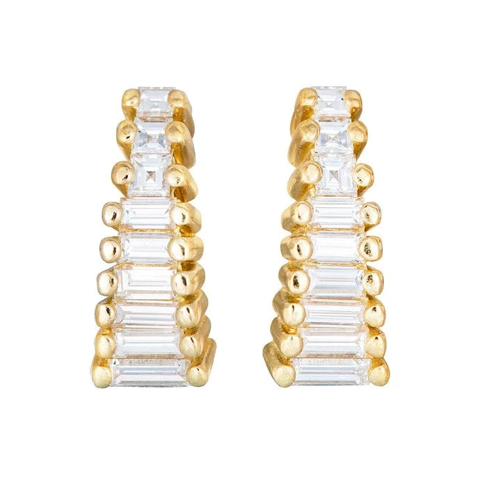 The Art Deco Diamond earrings by Artemer feature a dazzling duo of multiple baguette diamonds and carre cut diamonds. This graceful gradient of diamonds hugs the ear perfectly with a slight curve and completes every look with a radiant touch of glamour.