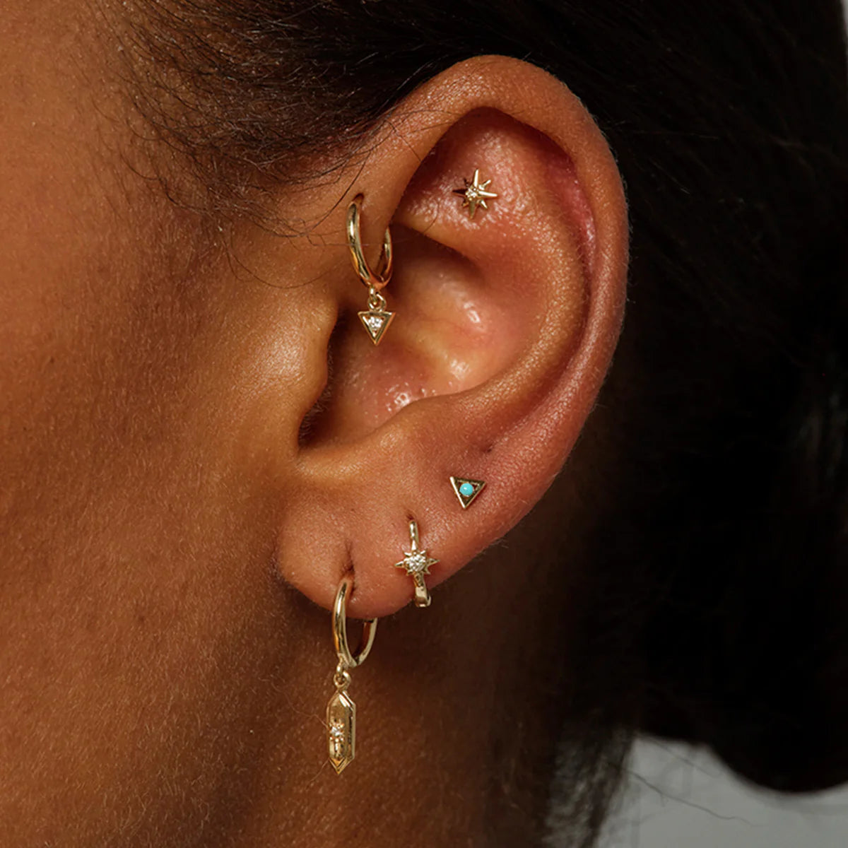 From Metier by Tomfoolery, the Astra Az Turquoise Stud highlights a single round turquoise gemstone elegantly set within a triangular frame. A design that's effortlessly simple yet undeniably impactful.