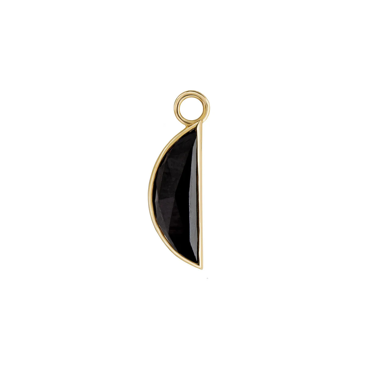 From Metier by Tomfoolery, the AZ Black Spinel Half Moon plaques feature a 9ct yellow gold bezel setting and offer the flexibility to be worn on our hoops, swivel clasps, or attached to our diamond-cut, Roma, and London chains.
