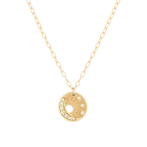 A mini version of a Celine Daoust classic design featuring the sun and the moon in pave diamonds.