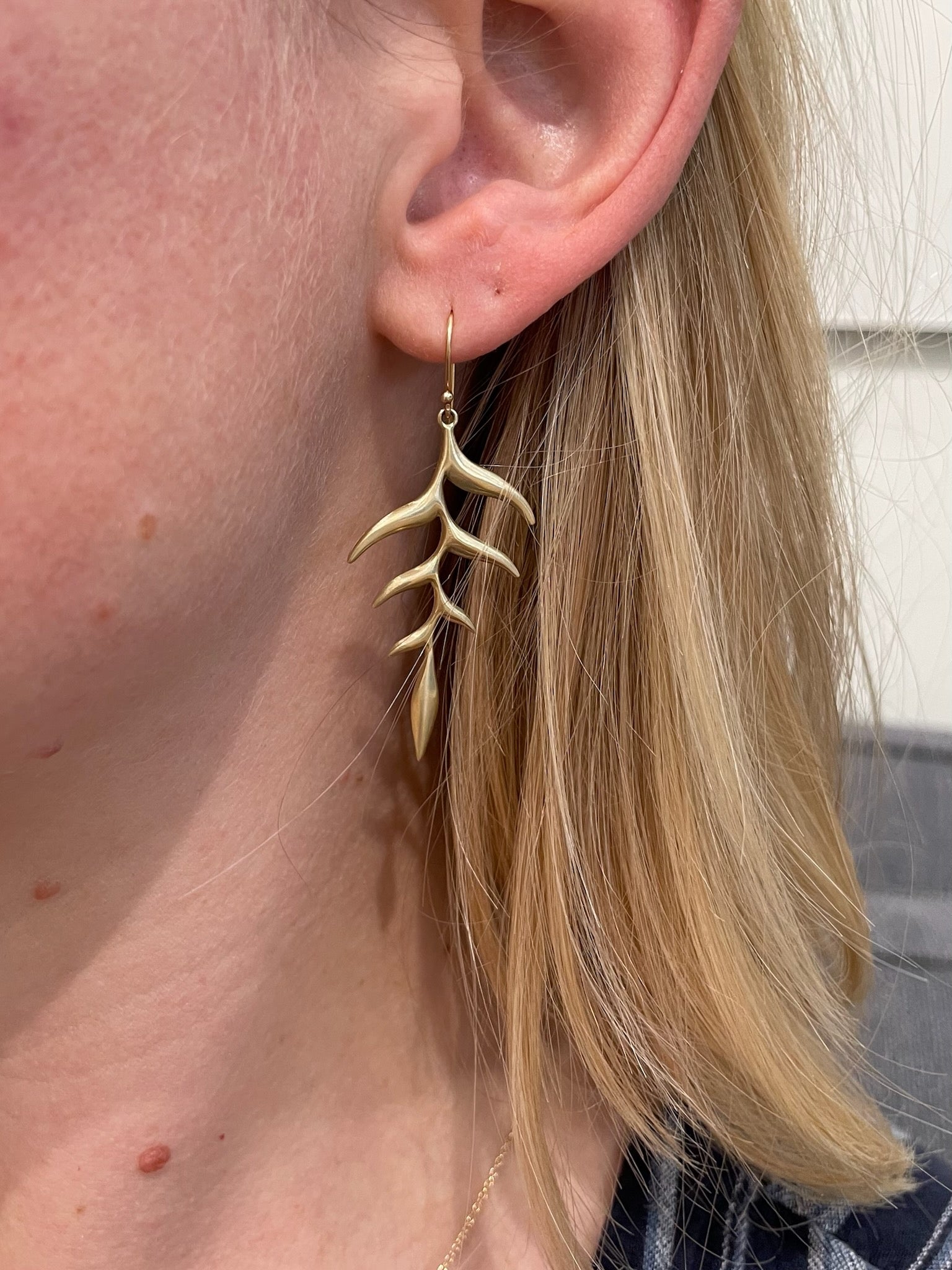 From Annette Ferdinandsen, these beautiful Bird of Paradise Earrings made out of 14K yellow gold will take you close to paradise itself.