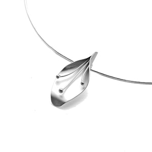 From Kelim Jewelry, a gracefully designed calalilly motif in brushed sterling silver hangs from a sterling silver cord chain.