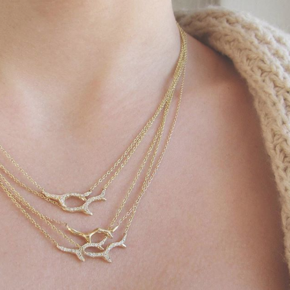 This baby branch pendant from Misa Jewelry flows delicately with the chain and along your neck. Great layering piece or worn alone.