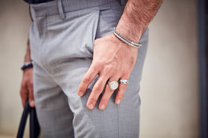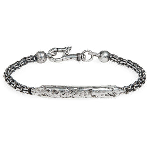 This rugged bracelet from John Varvatos is made with distressed sterling silver, which adds a vintage feel to a versatile ID bracelet.