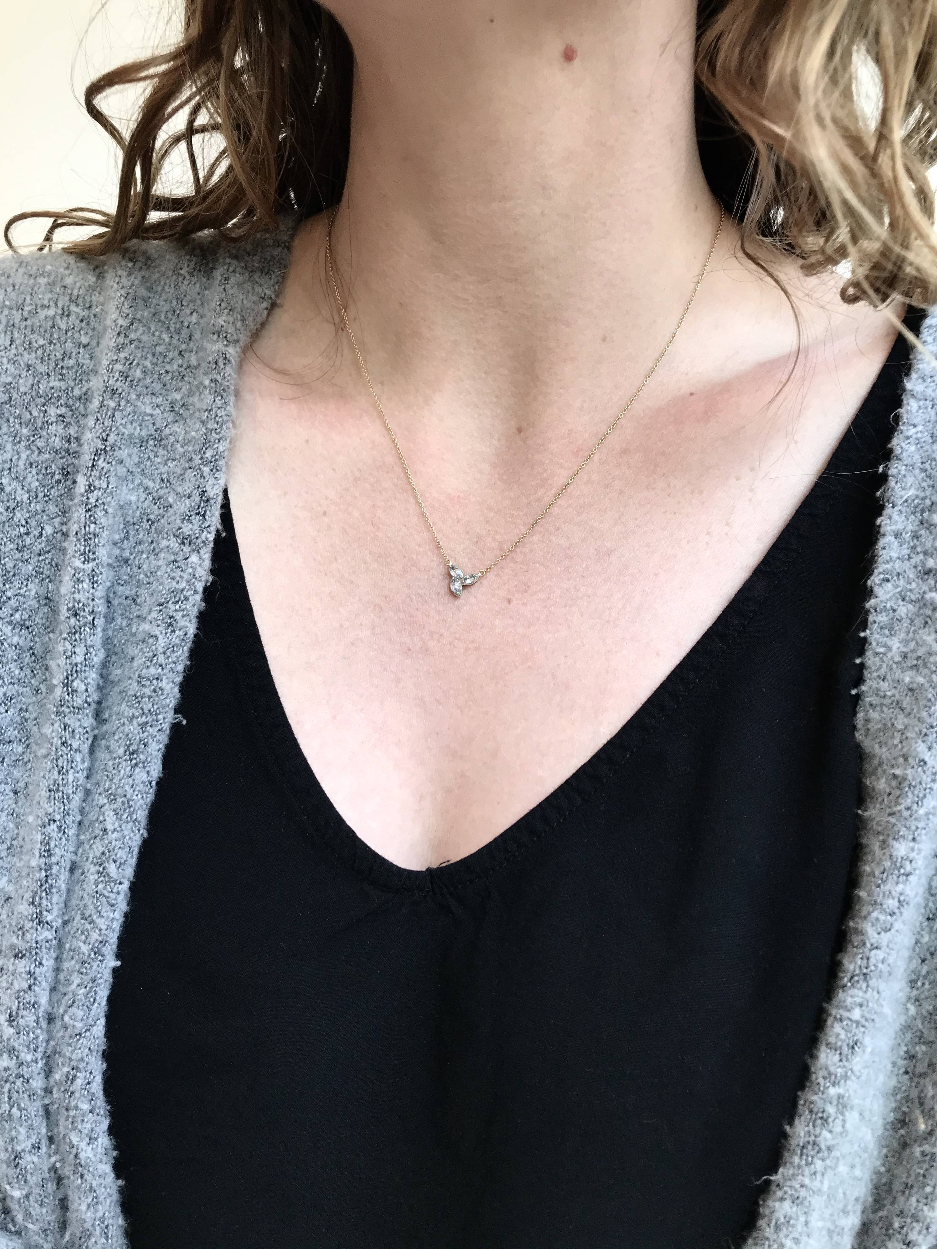 Dimensions: Diamond cluster is approximately 9mm x 7mm, Chain is 17" in length