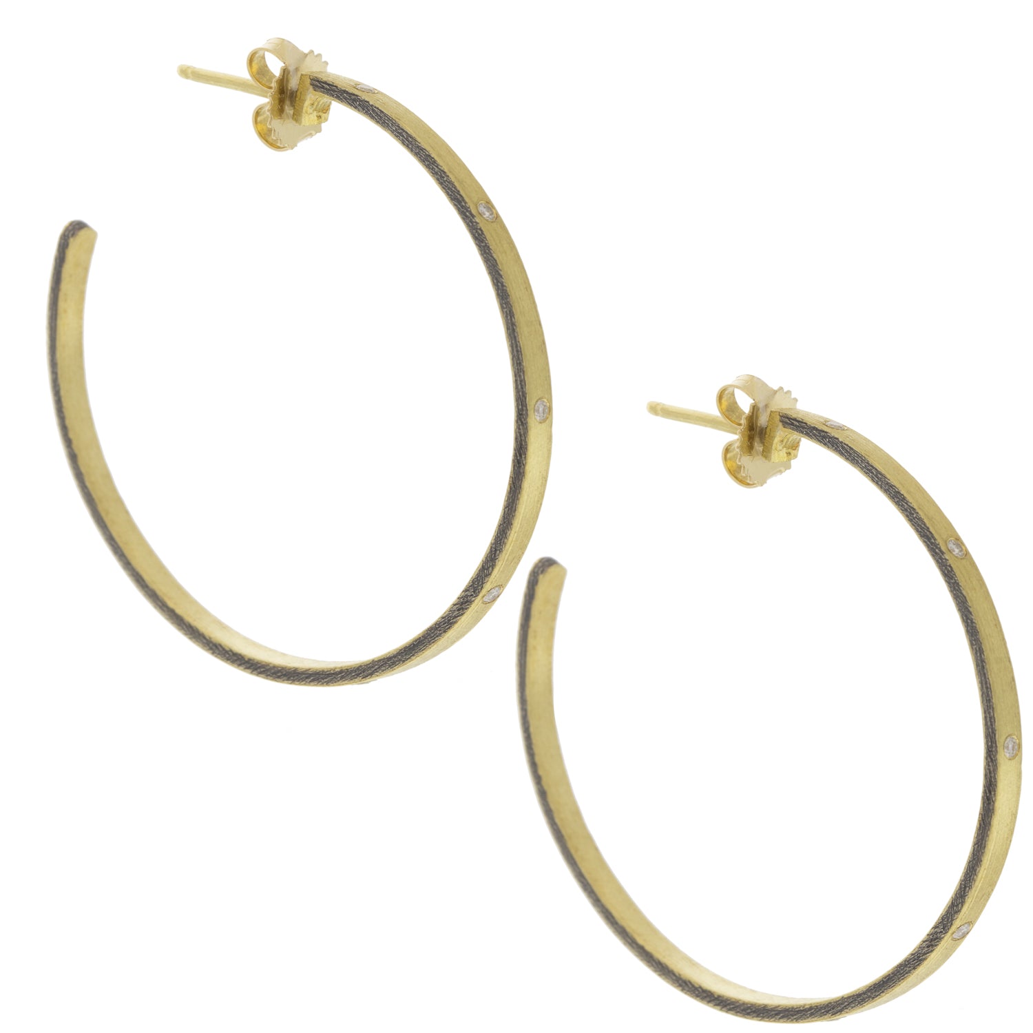 The Large Olly Hoop studs by Rene Escobar are made out of 18K yellow gold and sterling silver flush set with multiple white diamonds.