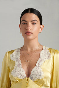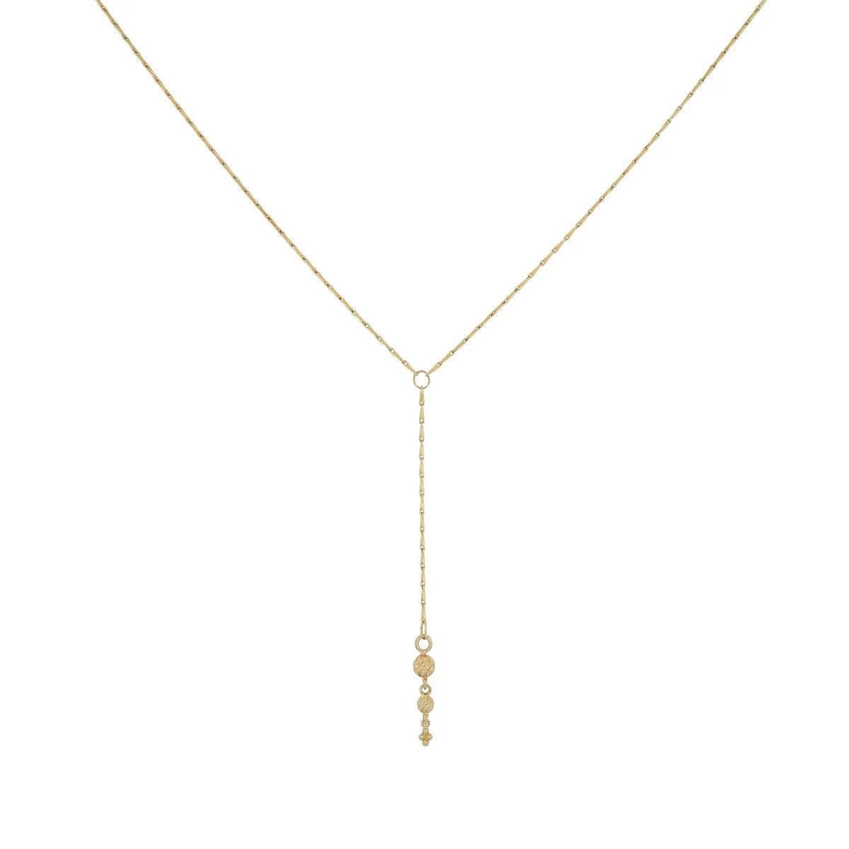From Metier by Tomfoolery, the Lillie Lantern Lariat necklace is made from 9ct yellow gold. An easy everyday wear, this necklace is possible to put over the head and features no clasps.