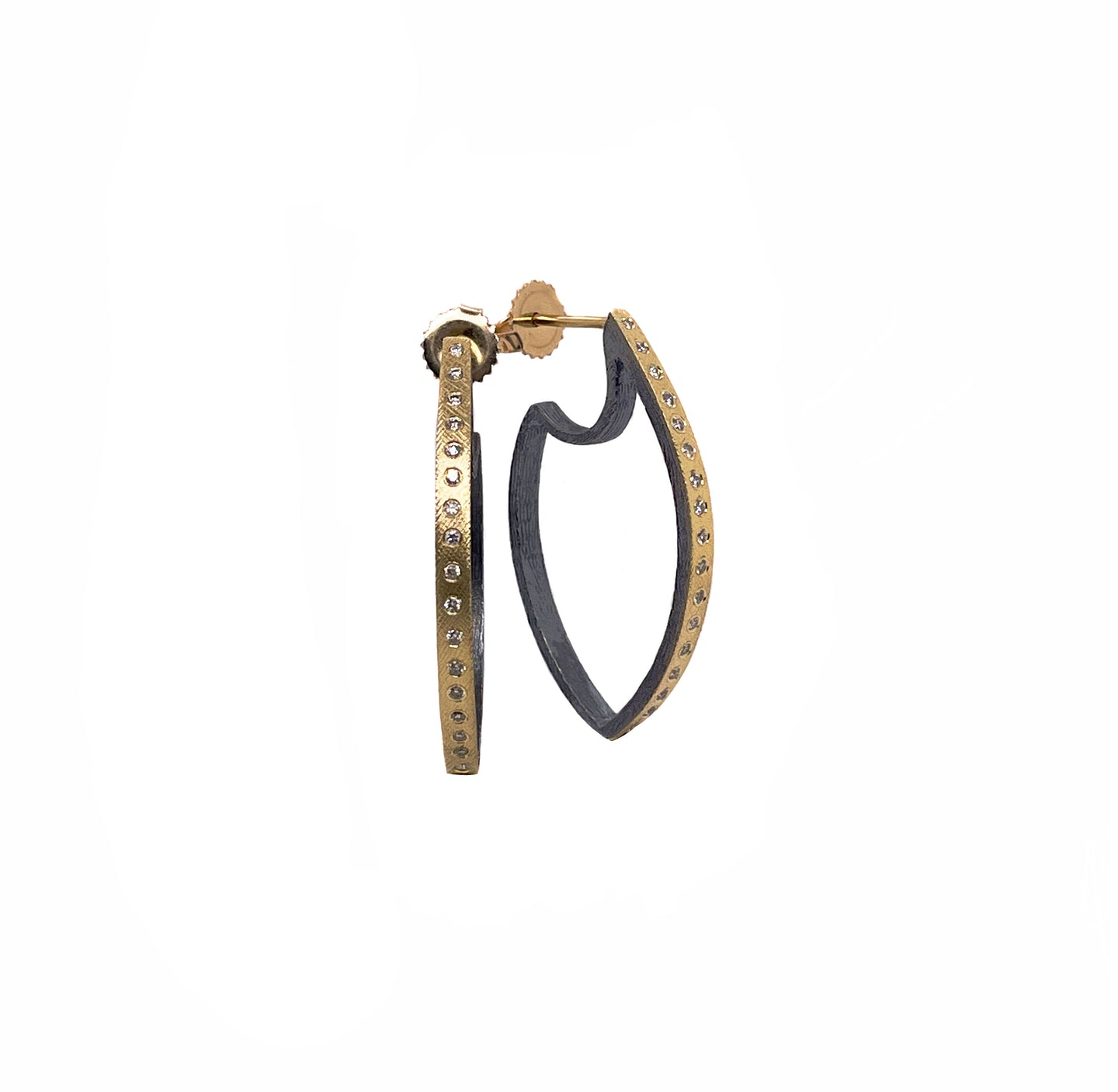 The Medium Celine Marquis Hoop studs by Rene Escobar are made out of 18K yellow gold and sterling silver flush set with multiple white diamonds.