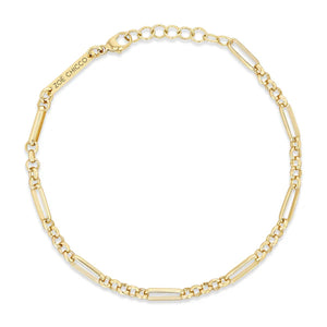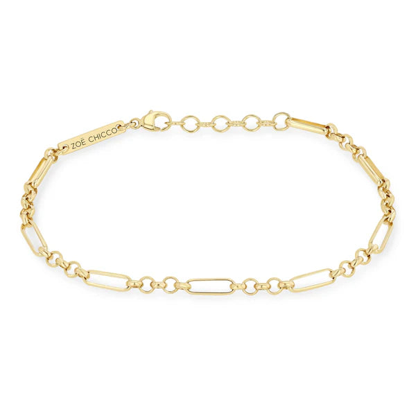 From Zoe Chicco, this bracelet is made out of 14k yellow gold , featuring a mixed chain made of paperclip rolo chain.