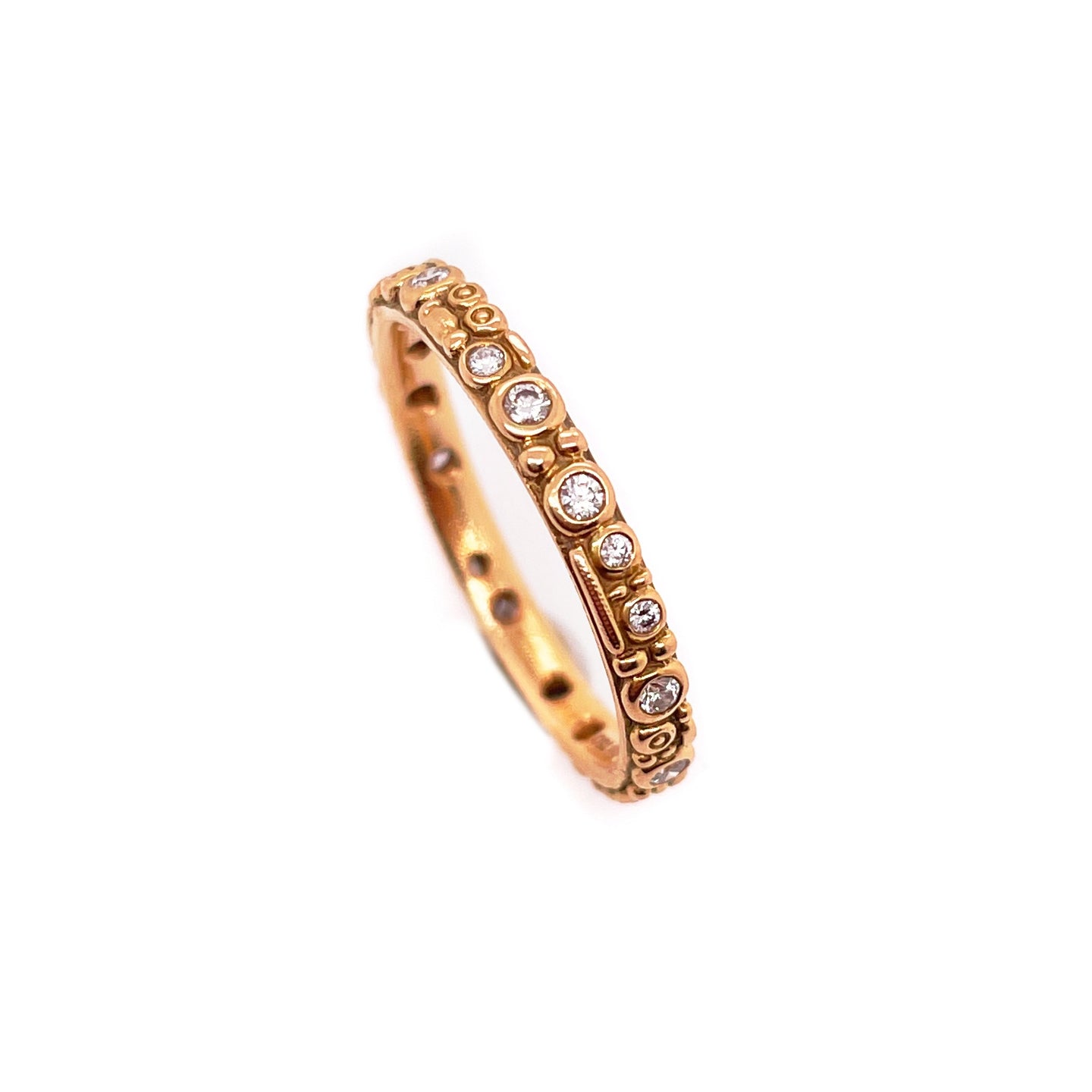 Alex Sepkus' 'Mini 62’ Band in 18kt rose gold with 17-18 diamonds, approximately .23 total carat weight.