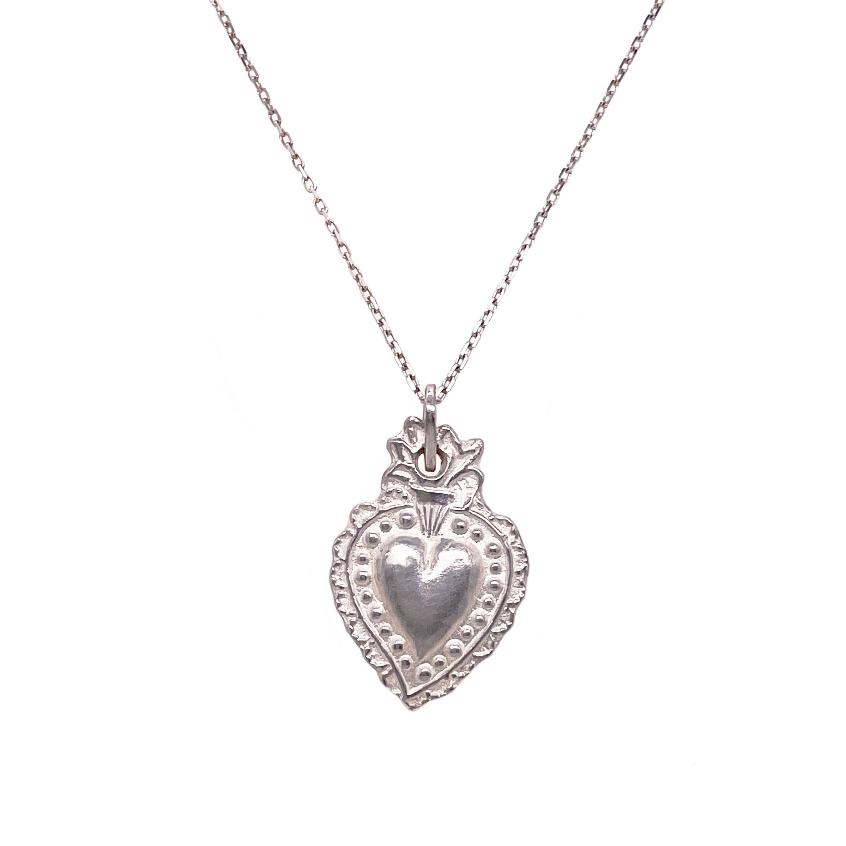 This sterling silver necklace from Robin Haley features an ornate heart motif on an 18" chain.