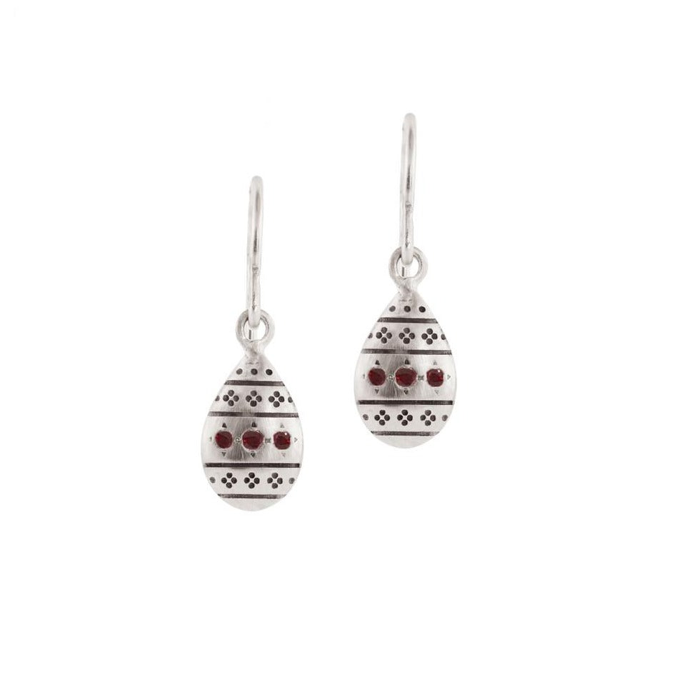 Adel Chefridi's 'Nomad Drop' earrings in sterling silver with 3 rubies.