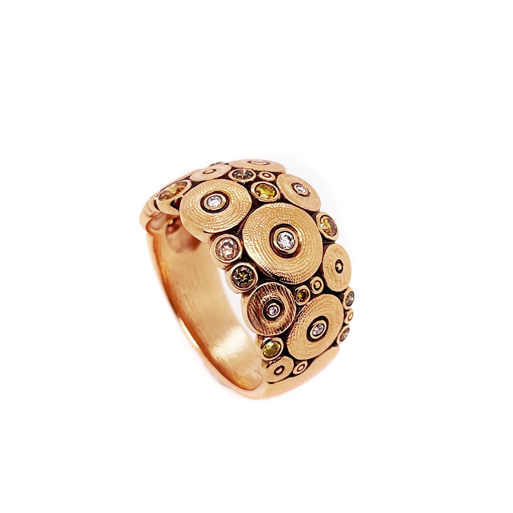 Alex Sepkus' 'Ocean’ Ring in 18kt rose gold with 13 natural color diamonds, .36 total carat weight and 8 white diamonds, .08 total carat weight. Price is for any size up to 8.75.
