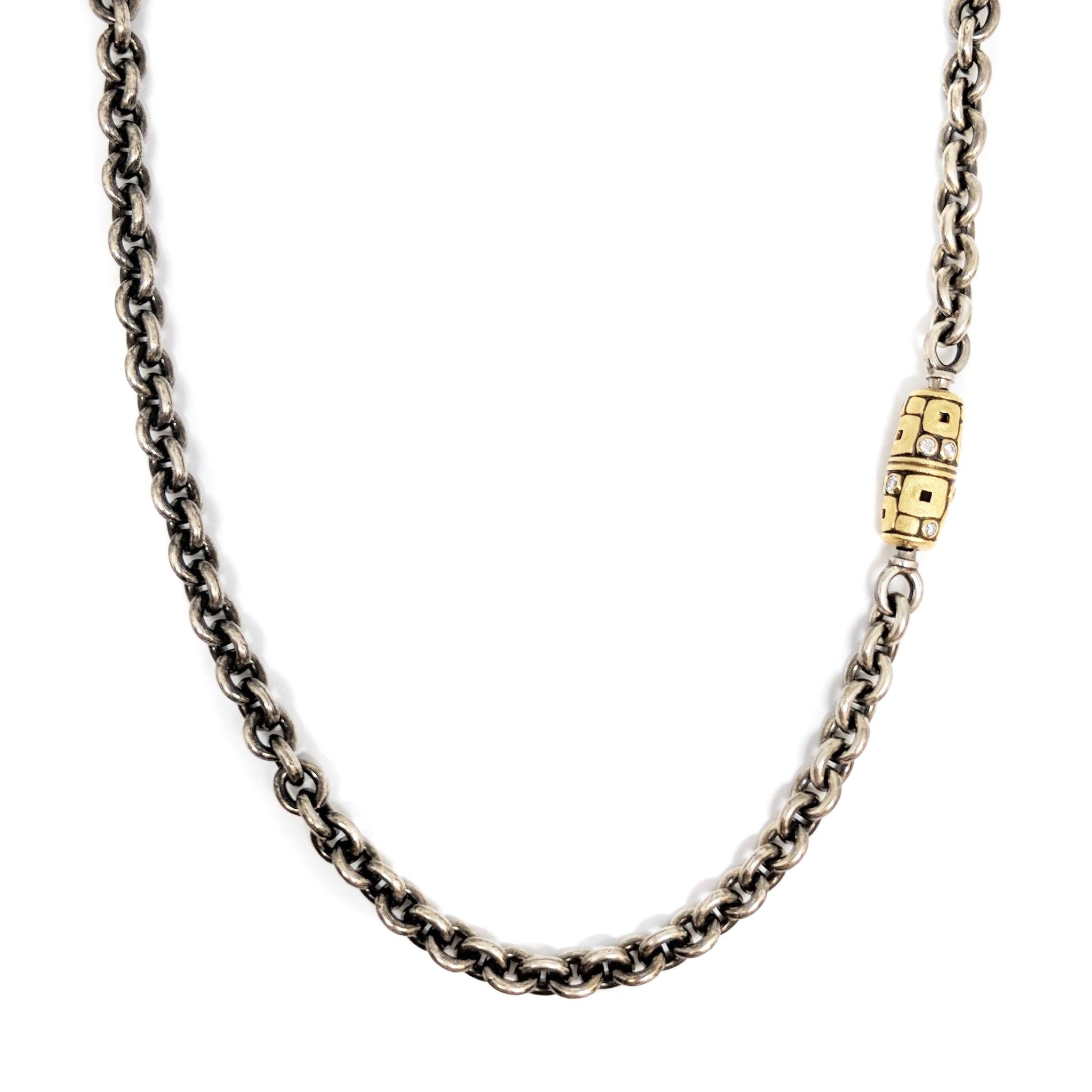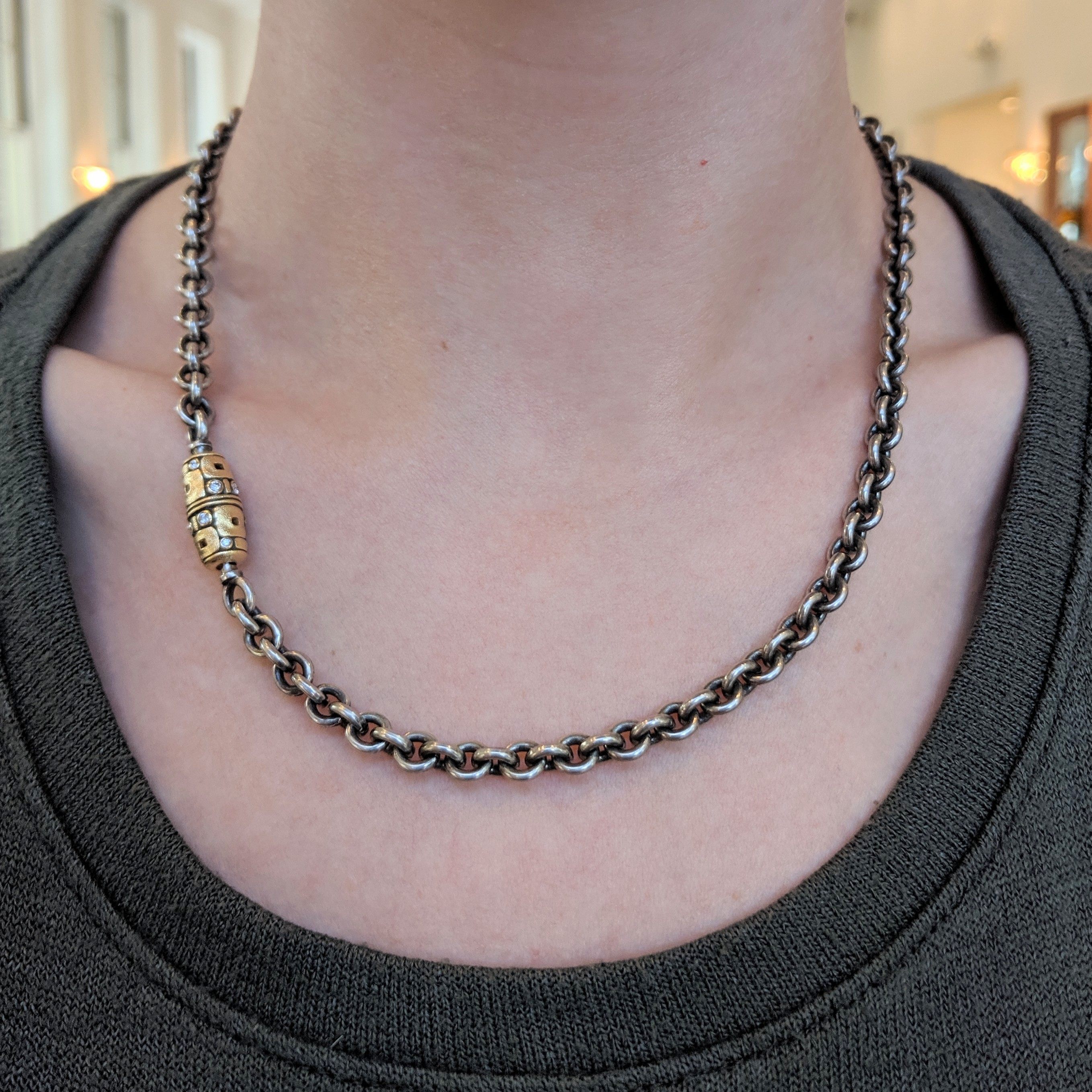 Alex Sepkus 'Little Windows' Vario clasp in 18k yellow gold with 12 diamonds, .21 total carat weight. Shown with 5.8mm Sterling Silver 17.5" chain (SOLD SEPARATELY).