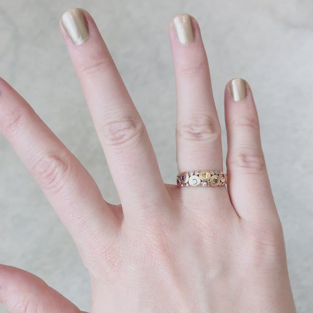 Medium: 18k Rose Gold, 6 Rainbow Sapphires, 9 diamonds .12ctw
