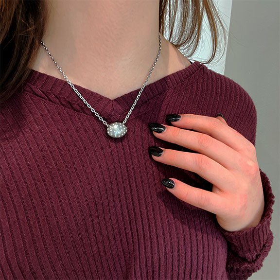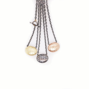 The Pearl Necklace by Rene Escobar is made out of oxidized and textured sterling silver, set with multiple white diamonds (0.25 tcw) offers just the right amount of sparkle, featuring a hand made toggle clasp.