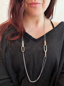 Pesavento's Forever Chic collection is inspired by timeless elegance. Designed at the end of 2020, this collection with its clean lines sets the trend for clear-cut, stylish and iconic pieces. This necklace is made out of rhodium and rose gold plated links and a rhodium plated chain.