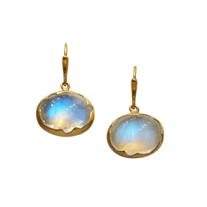 From Annette Ferdinandsen, gorgeous rainbow moonstones are bezel set in an 18K yellow gold drop setting.