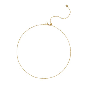 From Metier by Tomfoolery, the Roma Adjustable Chain Necklace is the perfect layering chain. Made in Italy from 9kt yellow gold, it features alternating oval and round diamond filed links, which catch the light beautifully, and features a sliding clasp that is fully adjustable from choker length through to 18 inches. The chain looks great with any of Metier's plaques, if you want to add some color or texture.