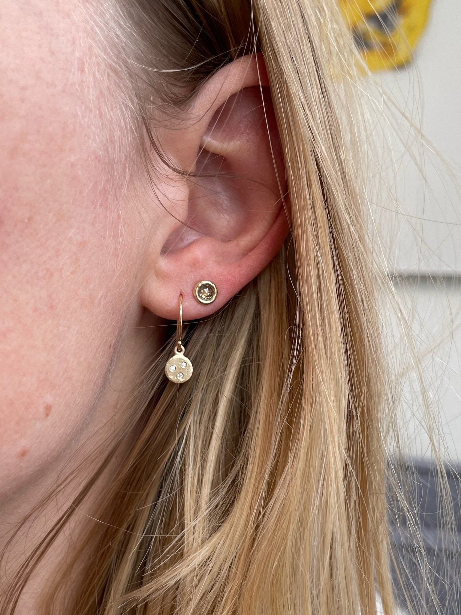 You'll never want to take off these sparkly rosecut diamond studs from Sarah Swell! Made out of rose cut champagne diamonds surrounded by an organic 14k yellow gold bezel set, these studs are sure to be your new everyday wear.