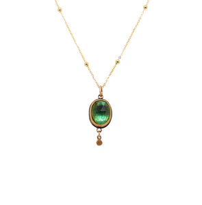 Medium: Green Tourmaline, 22K Yellow Gold, Sterling Silver, 14K Yellow Gold Chain