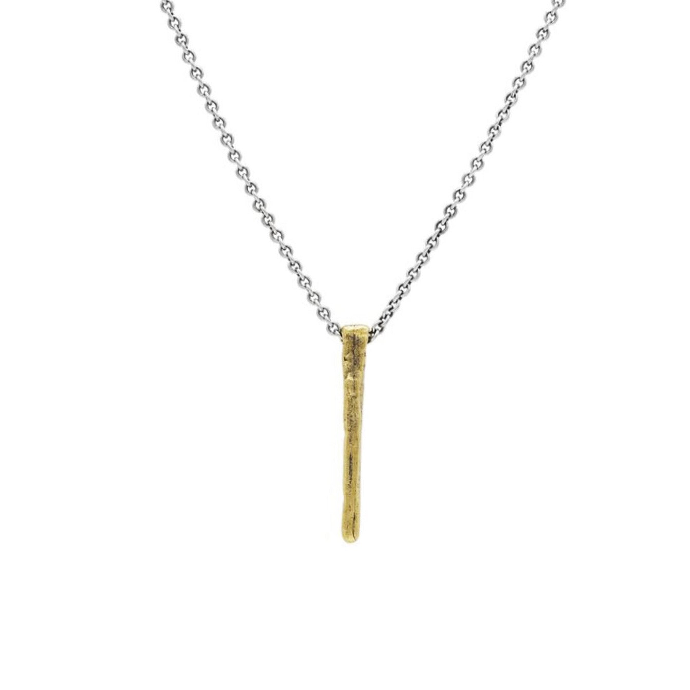 This single brass nail necklace is perfect for fans of John Varvatos. Offering a unique industrial look, this accessory is made with brass and hangs from a sterling silver chain, finished with John's signature skull clasp. Easy to wear and lightweight, it's perfect for completing any rock-inspired style.