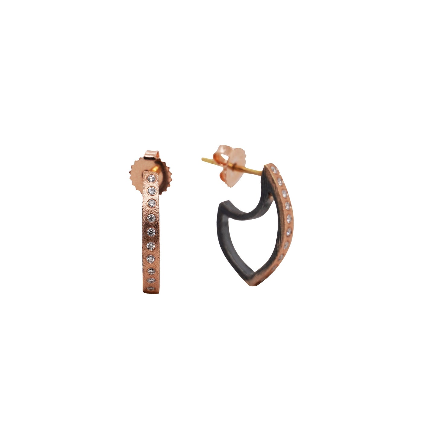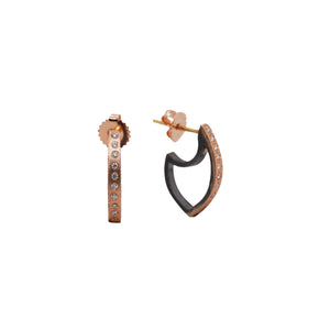 The Small Celine Marquis Hoop studs by Rene Escobar are made out of 18K rose gold and sterling silver flush set with multiple white diamonds.