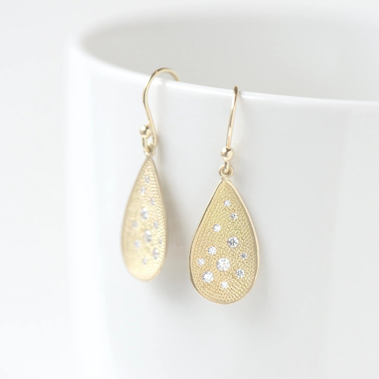 Anne Sportun's classic "stardust" textured diamond teardrop earrings in 18k yellow gold.