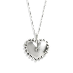 By Anzie, this heart shaped locket is suspended from a sterling silver chain and features a star with a white sapphire center stone. This necklace is an ideal keepsake piece for adding a bold statement to any attire.