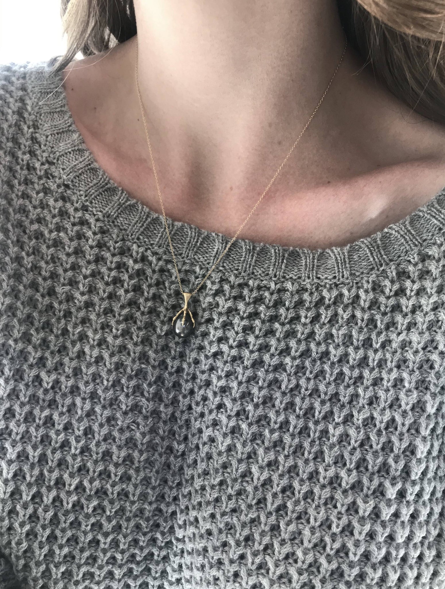 From Annette Ferdinandsen, a lustrous Tahitian pearl is set in an 18K yellow gold claw, hung from an 18K yellow gold chain.
