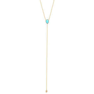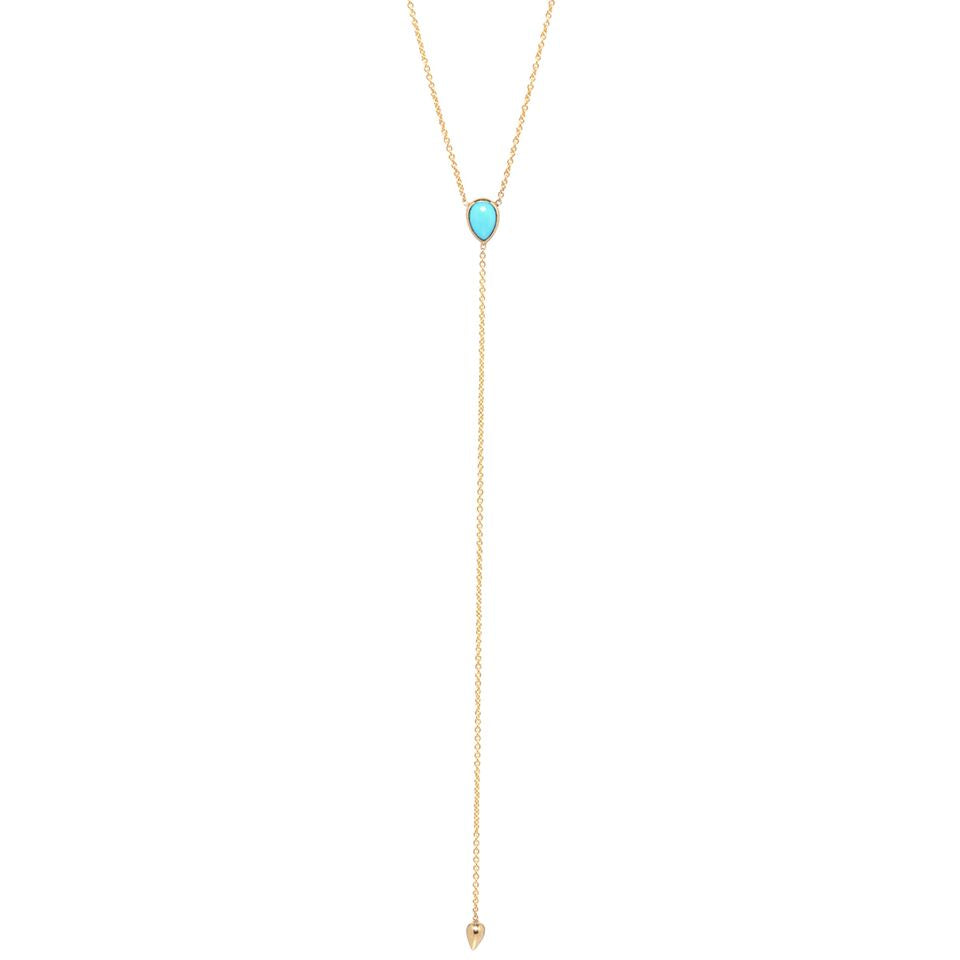 14k gold bezel set turquoise lariate necklace from Zoe Chicco.